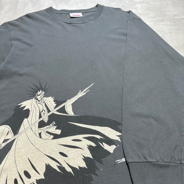 【サイズ】 タグ表記 ONESIZE 着丈67.5cm 肩幅48.5cm 身幅51.5cm 袖丈20cm 【状態】鬼フェード、良クラッキング◎ 背面裾右の方に一カ所・その上に一カ所ピンホールがございます。左袖の端にピンホールが2カ所ございます。左袖裏・背面右部分にシミ有り(雰囲気◎) 裾・袖ステッチ抜けあり。左袖先ステッチ解れあり。右袖下のステッチ抜けあり。 『闇遊戯の顔どん』 2010年に入っているメキシカンからの1枚で 当店では、チラチラと厳選してピックしてきておりますが これ個体えぐ過ぎます^^ フロントプリントのインパクトは メキシカンらしく 2010年に入ると特にクラッキングが入りにくいプリントに変わっていく為 個人的にもヤレた個体は 非常にテンションが上がるのですが もう現物最高です。笑 このユースの規格にはなるので ワンサイズとは言え、少しタイトめではございますが アメリカ規格のユースXLと比べれば かなり着やすいバランスかと思います◎ 何より、今回バックも。 別パターンが入る嬉しい条件で、 遊戯と海馬の対峙しているパープルのワントーン。 このバックじゃなければ、正直買い付けてきておりません。 フロントと同じプリントがバックに流用される事が多い中 しっかり別パターンを落とし込んでいるのは かなり嬉しいですし このグラフィック×パープルインク これは、年代的にレギュラー枠ですが サイズがもっと大きければ 値段はグっと上がってしまうかなと。 その点、入る方には非常にオススメな1枚です! 【Humor cloth】