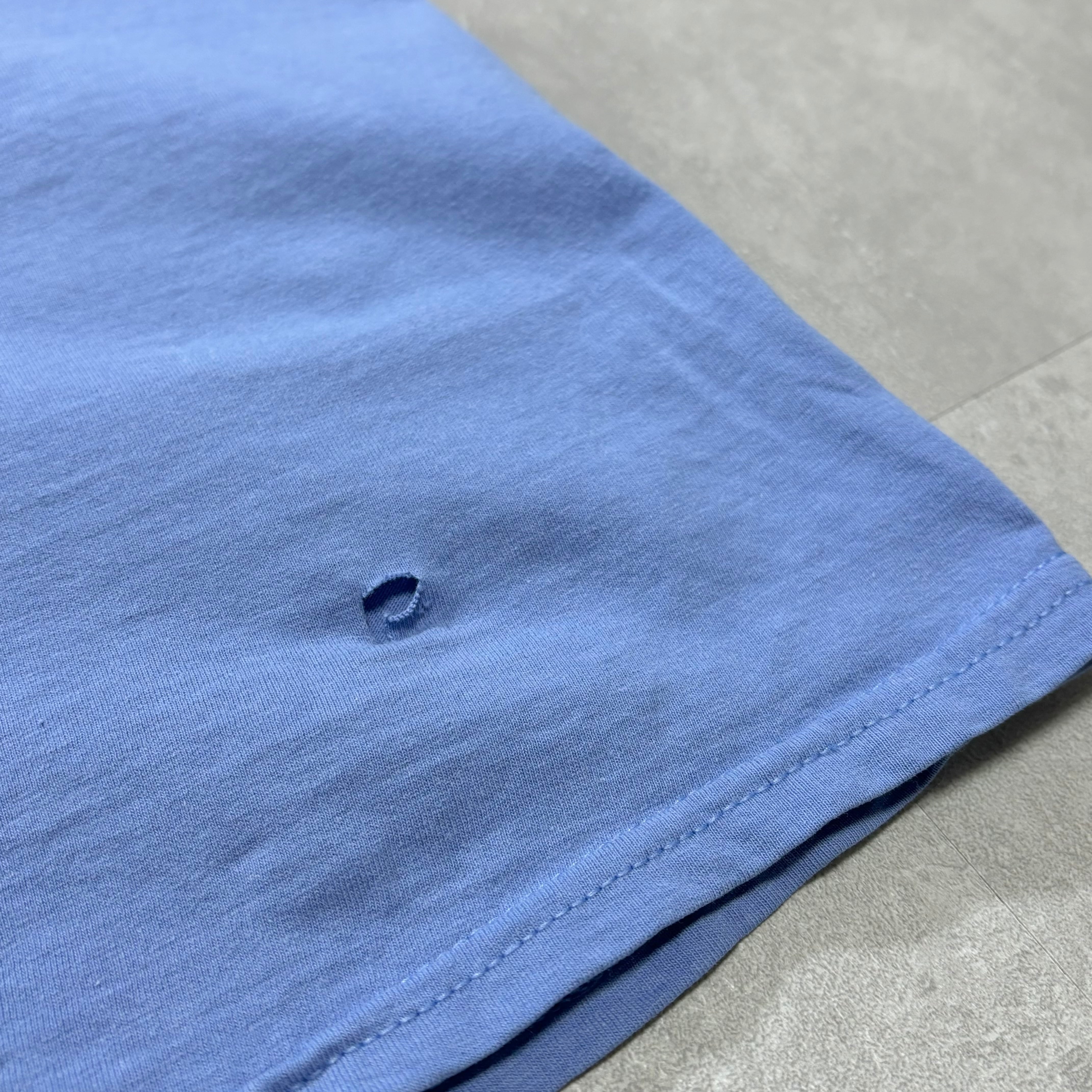フロント裾付近・背面裾付近に破れ、色褪せがございます。背面裾ステッチ一部緩み有り。