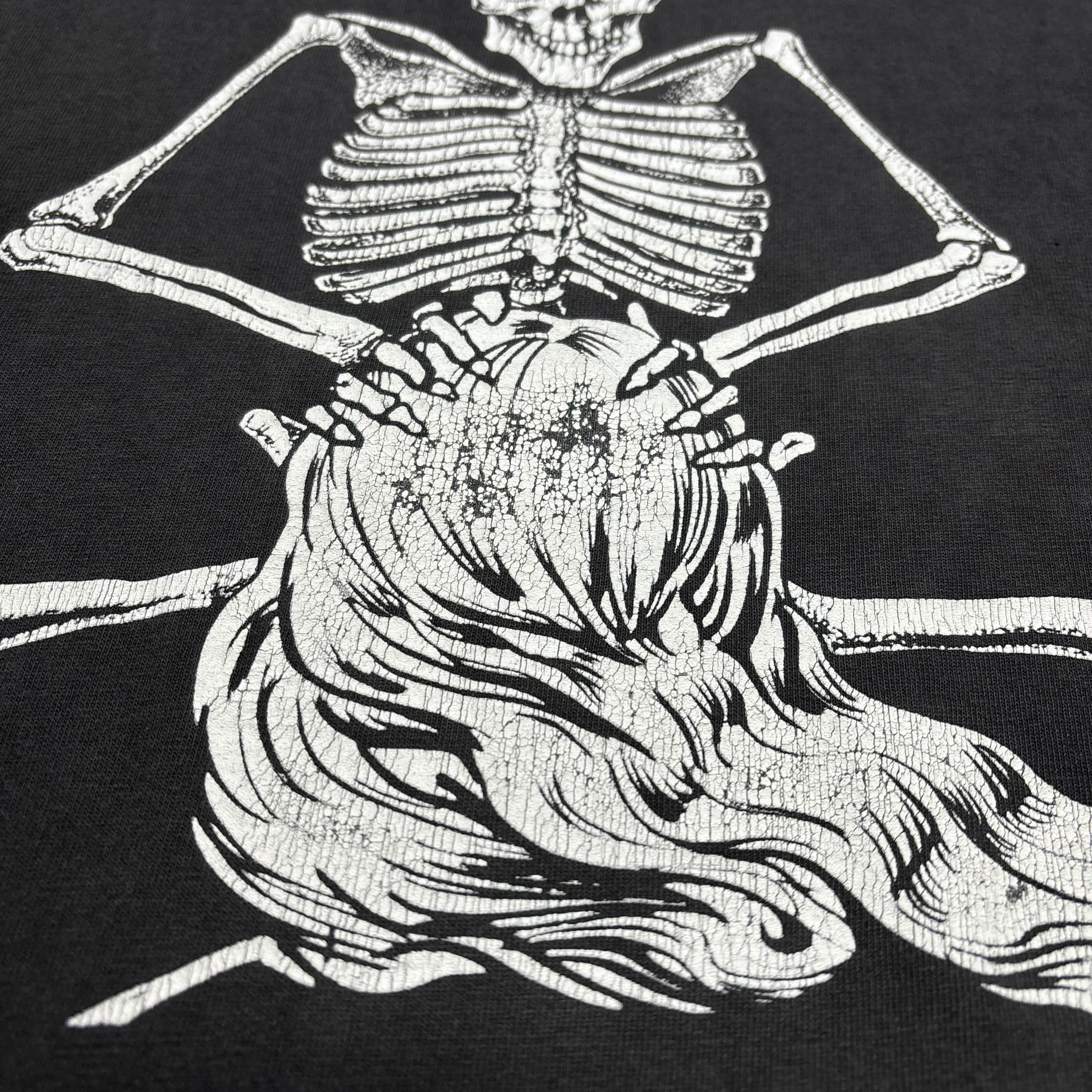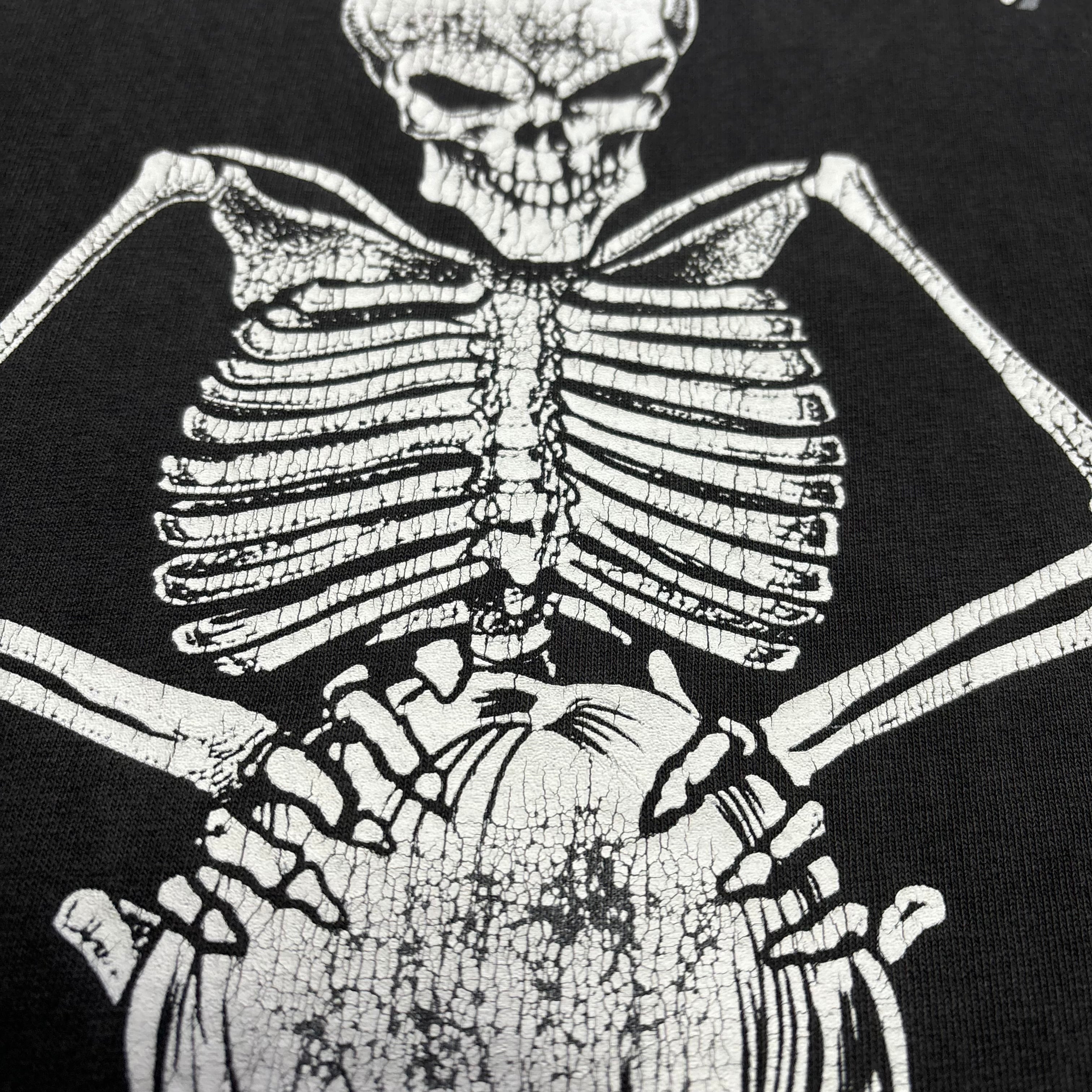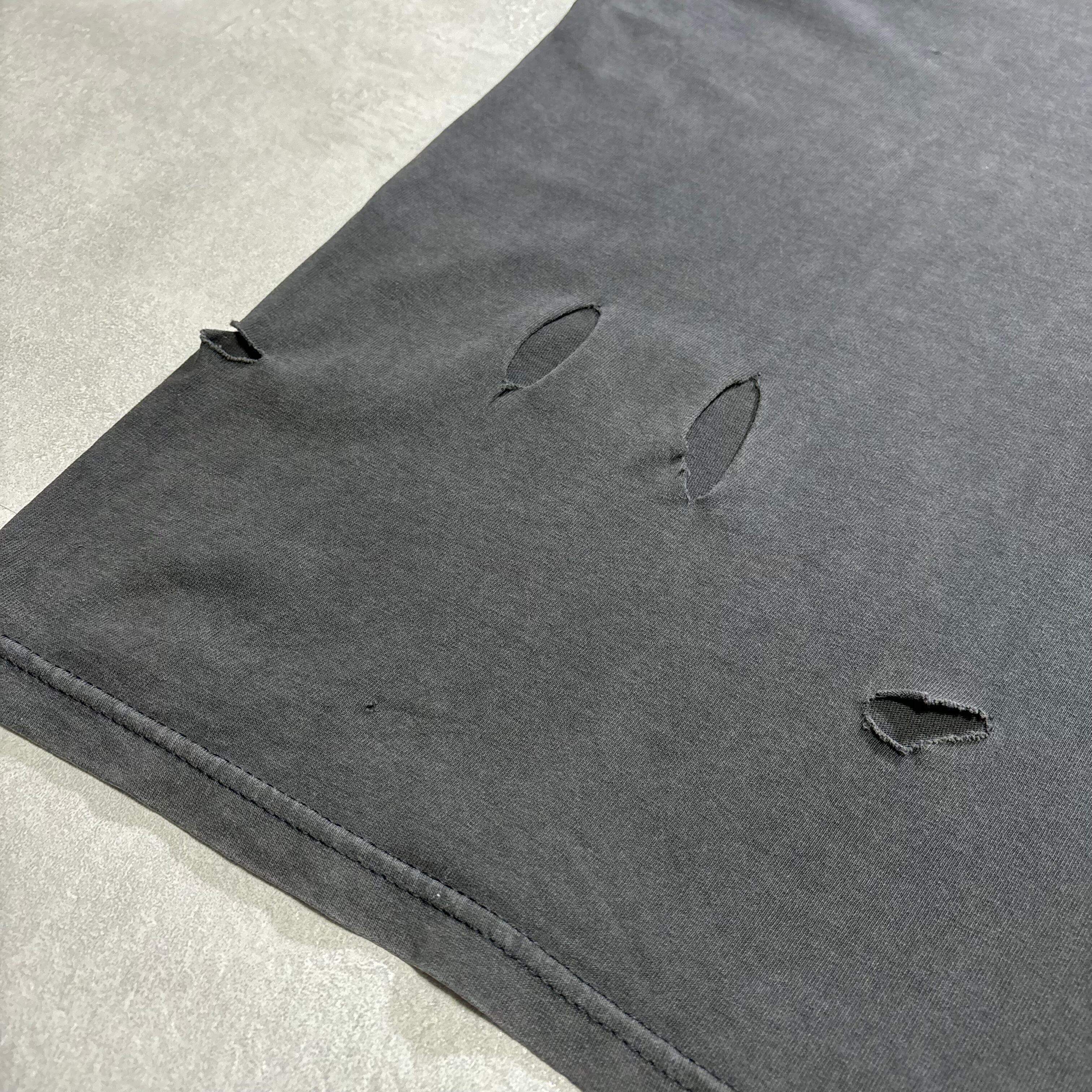 【状態】鬼フェード、裾付近に裂け・ホール複数有り、背面ピンホール複数有り。右袖裏ペンキ飛び有り。プリントのクラッキング◎